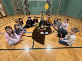 In der Religionsstunde am Donnerstag vor Weihnachten stimmten wir uns mit Pfarrer Andreas Kaiser auf das bevorstehende Fest ein. Die Kinder hörten gebannt der Weihnachtsgeschichte von Thomas Brezina in Reimen zu, die sie mit verschiedenen Utensilien auf dem Weg zur Krippe begleitete. Festliche Weihnachtslieder, die Herr Direktor Krzysztof Chwalko und Frau Lehrerin Margot Marek mit ihren Gitarren begleiteten, sangen alle mit großer Freude und Begeisterung. Den Abschluss bildete der weihnachtliche Segen für die Schüler, ihre Familien und alle Menschen, der die Feierlichkeiten beschloss.